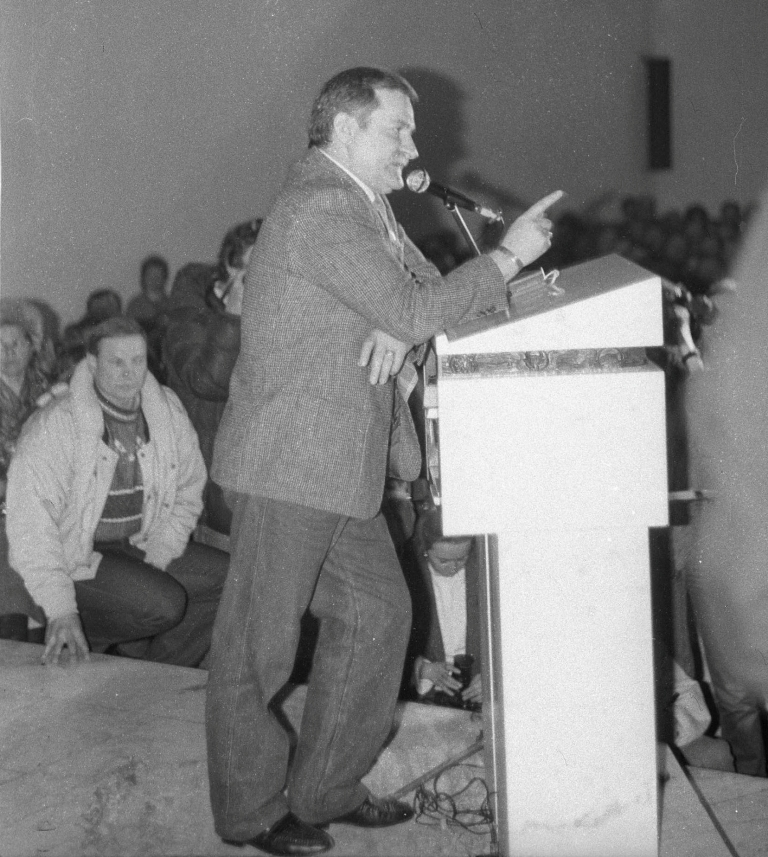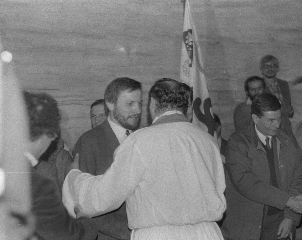 02.1989 r. Lech Wałęsa z wizytą w kościele w Mistrzejowicach Kraków