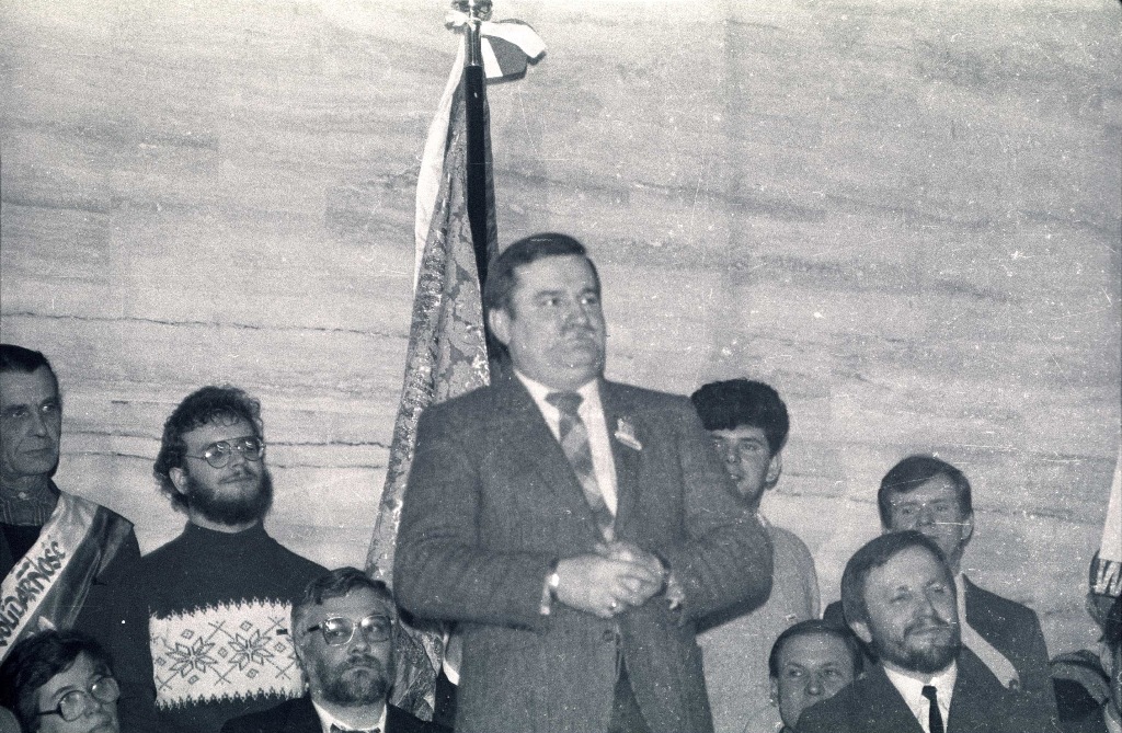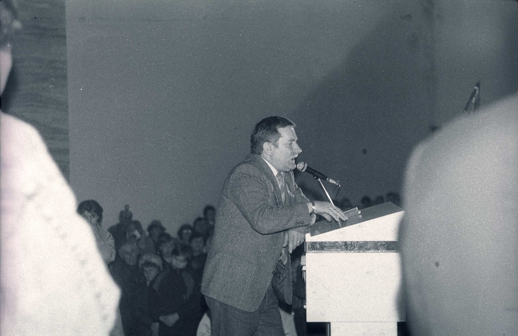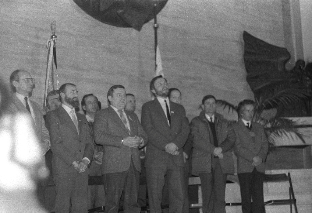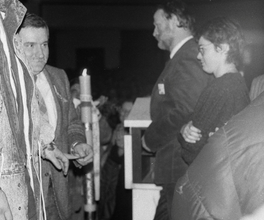02.1989 r. Lech Wałęsa z wizytą w kościele w Mistrzejowicach Kraków